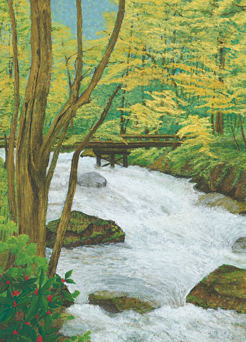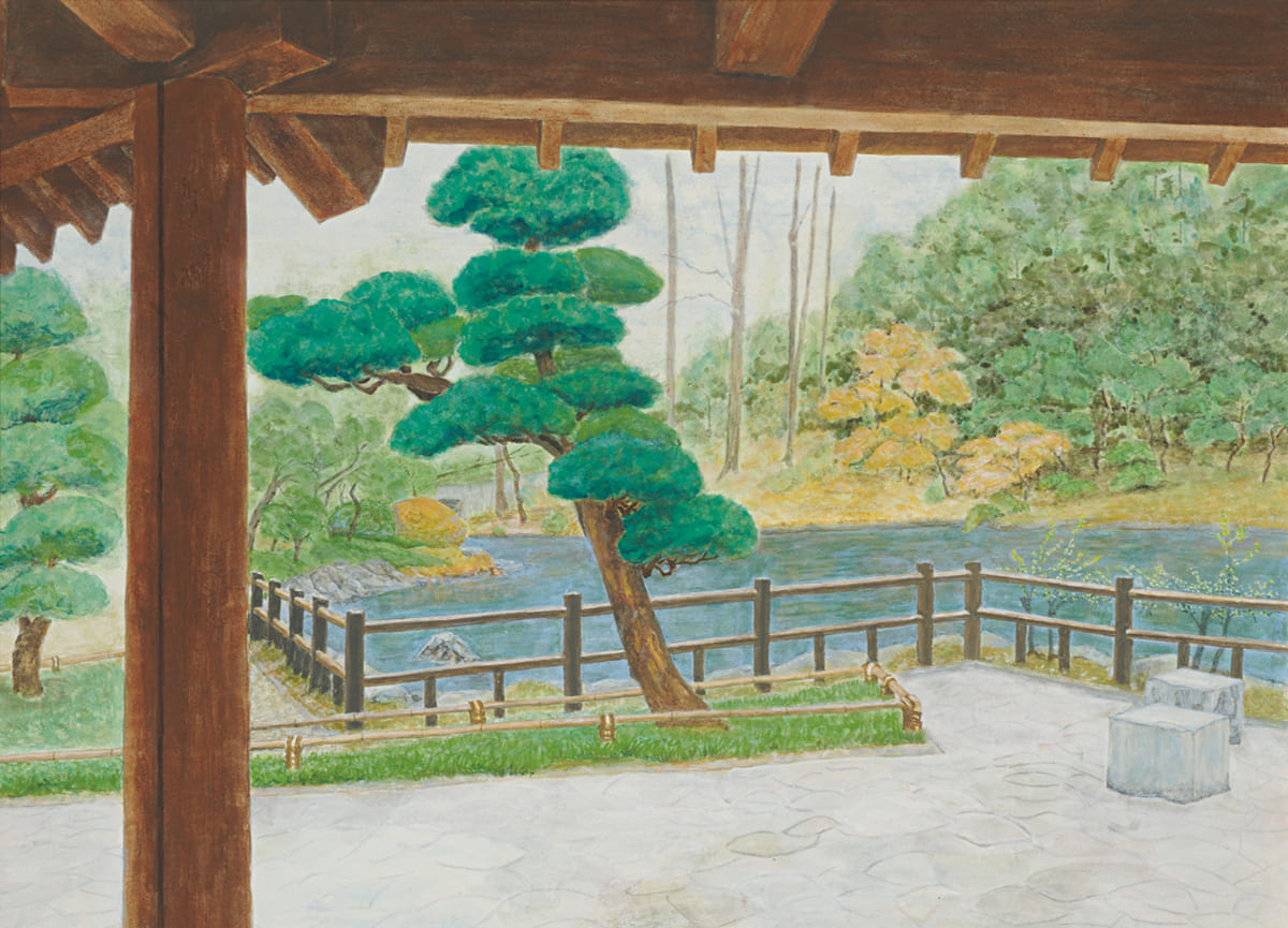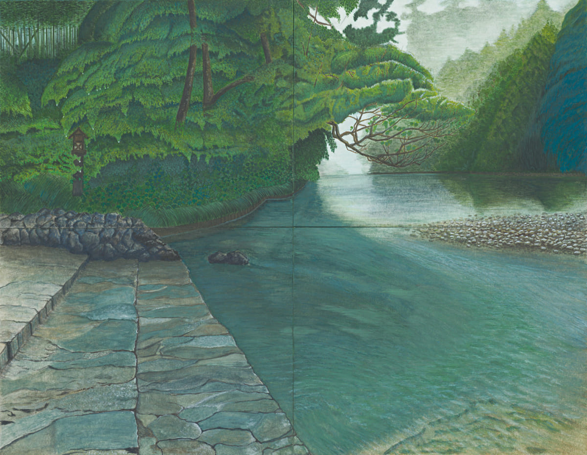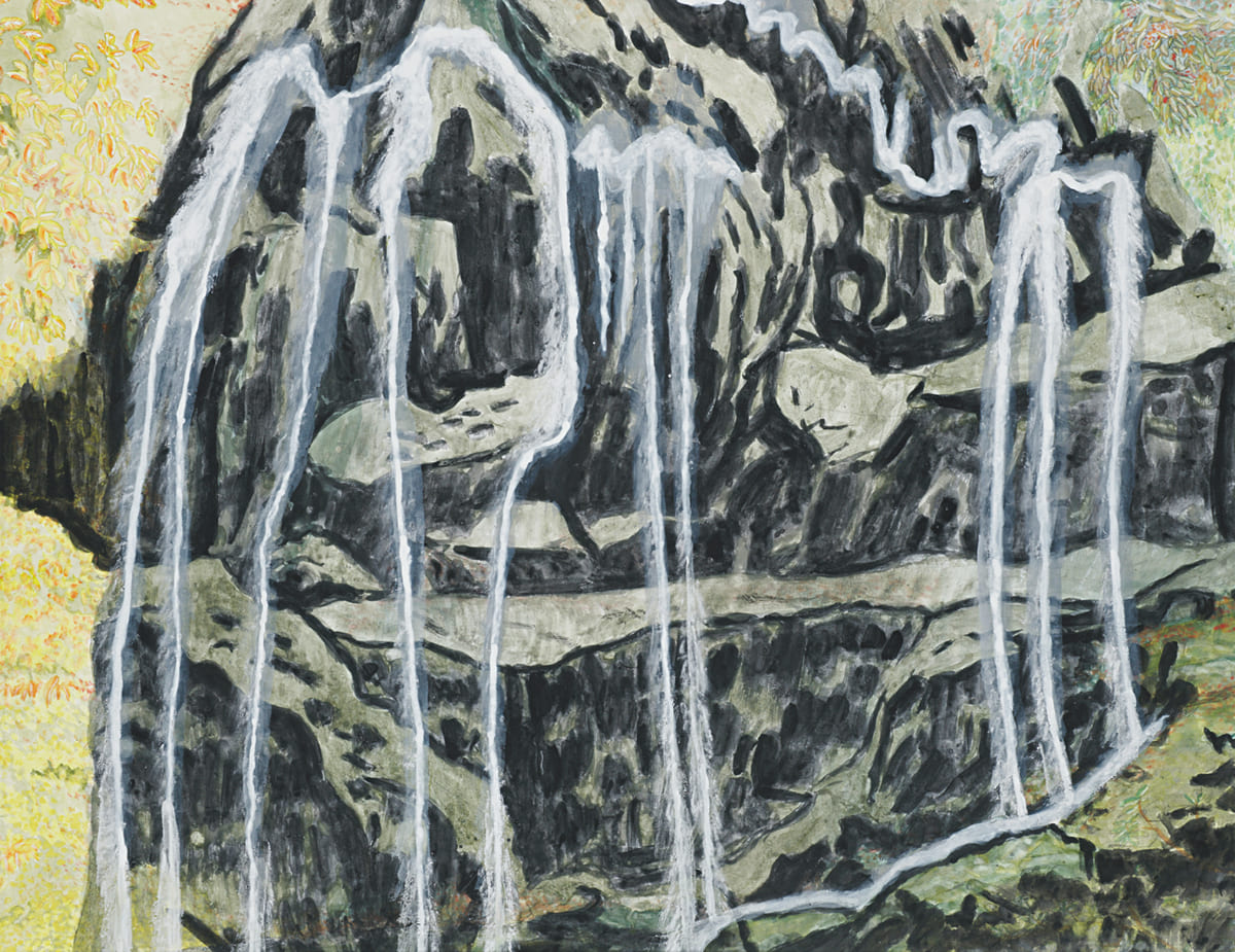 - 谿聲往時蕉翁来り詠みし大隈の瀧、不動堂の在る風景